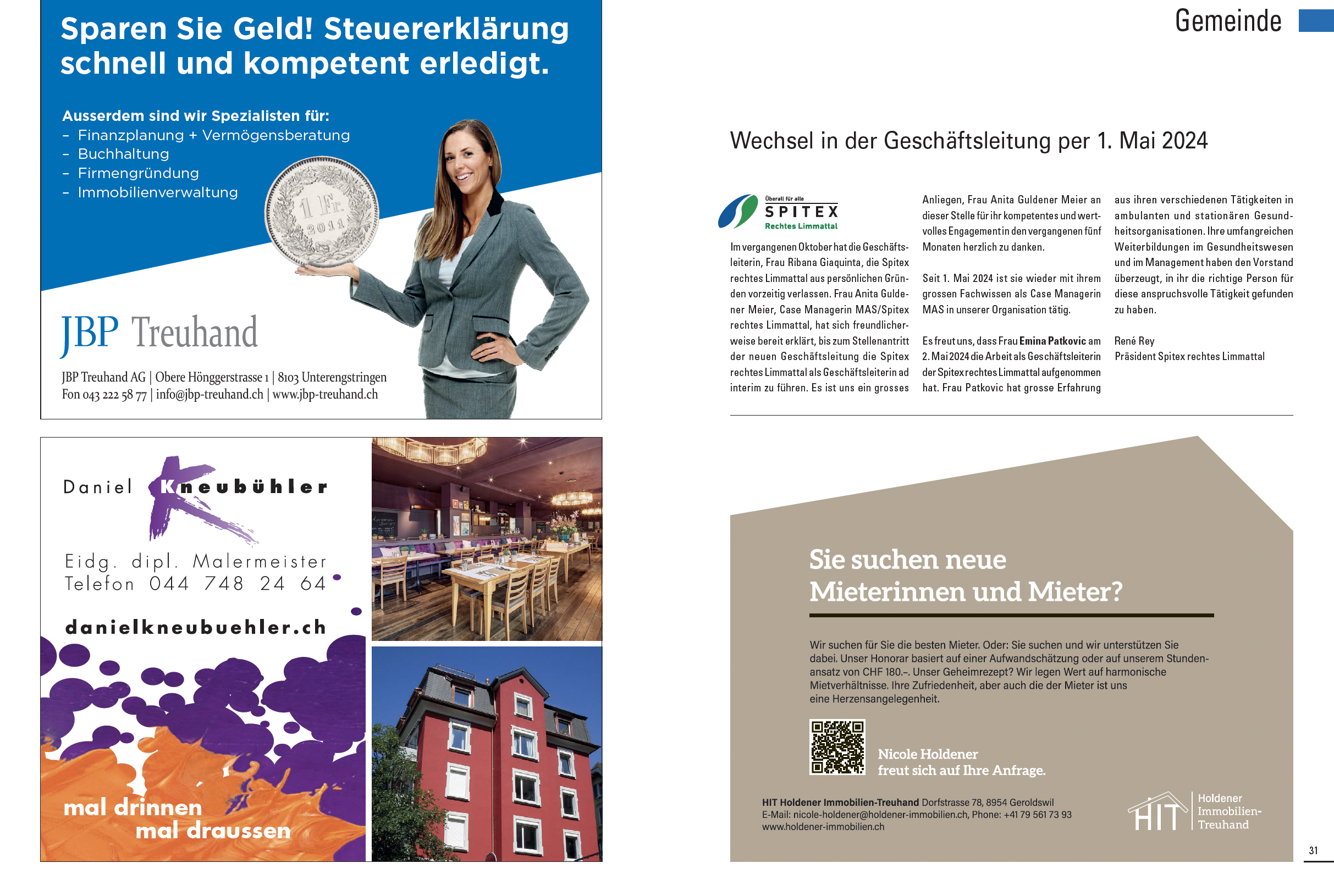 doppelseitigen Interview in den Geroldswiler Gemeindenachrichten, gefolgt